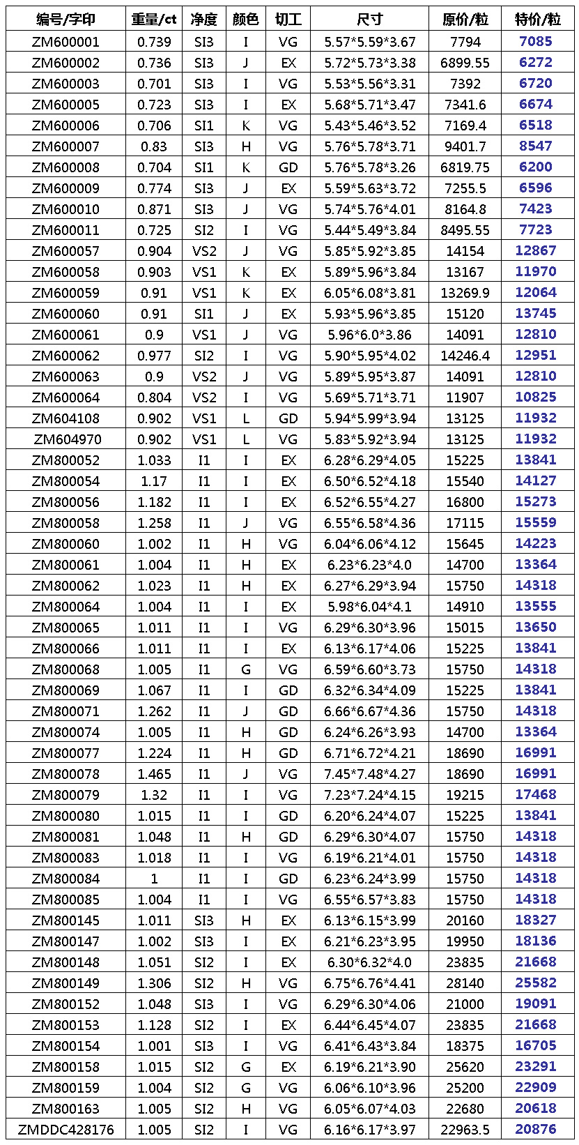 以上为钻明第63期特价优势裸石,数量有限,售完即止。