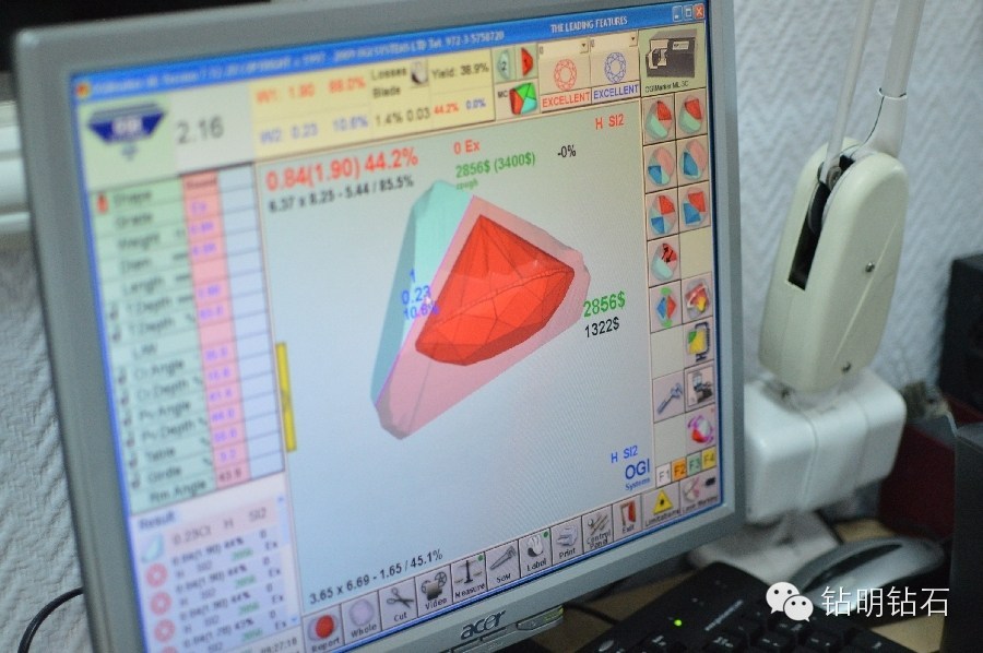 钻石需经过特殊系统的扫描,图像转换成电脑上的3D模型。相关电脑程序会设计钻石成品的外形,将浪费降至最少。照片中的钻石原石价值3560美元。