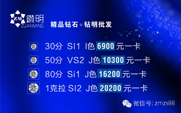 30分 SI1 I色 6900元一卡,2070元一颗。
