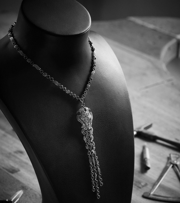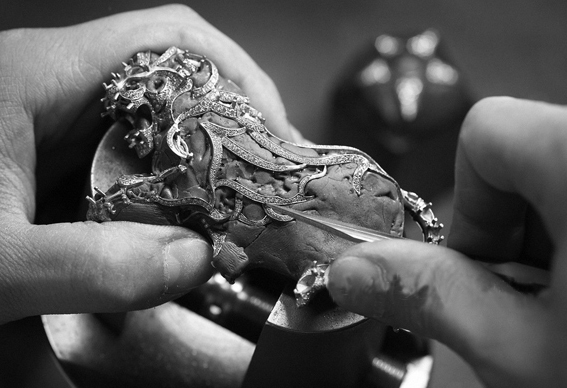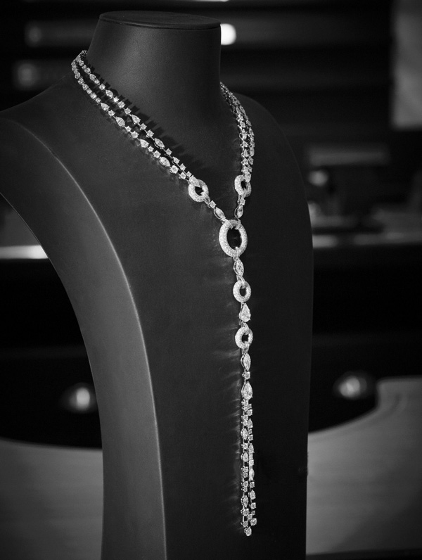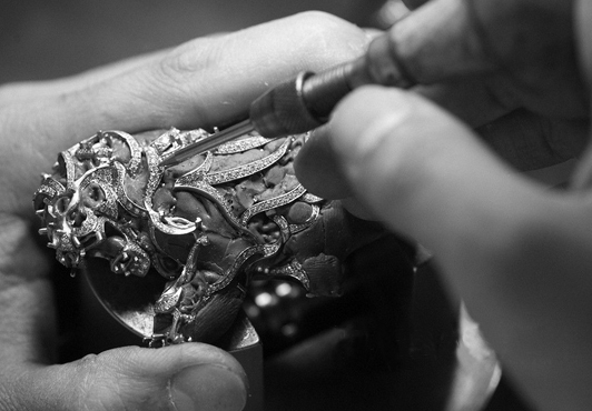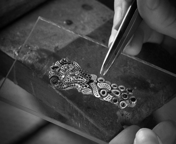 香奈儿 (Chanel) Sous le signe du Lion系列高级珠宝,所有的珠宝设计草图都交由工坊自行制模,规范珠宝成品的最终形貌,以确保每一件珠宝均符合品牌精神与风格。提及最具制作困难度的大型马赛克项链,香奈儿 (Chanel) 珠宝总监Benjamin Comar表示:“工坊内具有15至25年珠宝制作经验的工匠,需将每一个细部分开制作、再考究女性的身体曲线组装,且同时要让它具有相当柔软性才能成功穿戴,煞费心神。然而这同时也是我最爱的一件,远观它不过就是一件华丽的项链,非得要你亲近它才能察觉斑斕间浮现出一只立体狮头,像一个女人独有的秘密一样。”